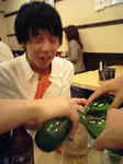 みんなから焼酎をつがれる作演・小太刀、はい出来上がり!